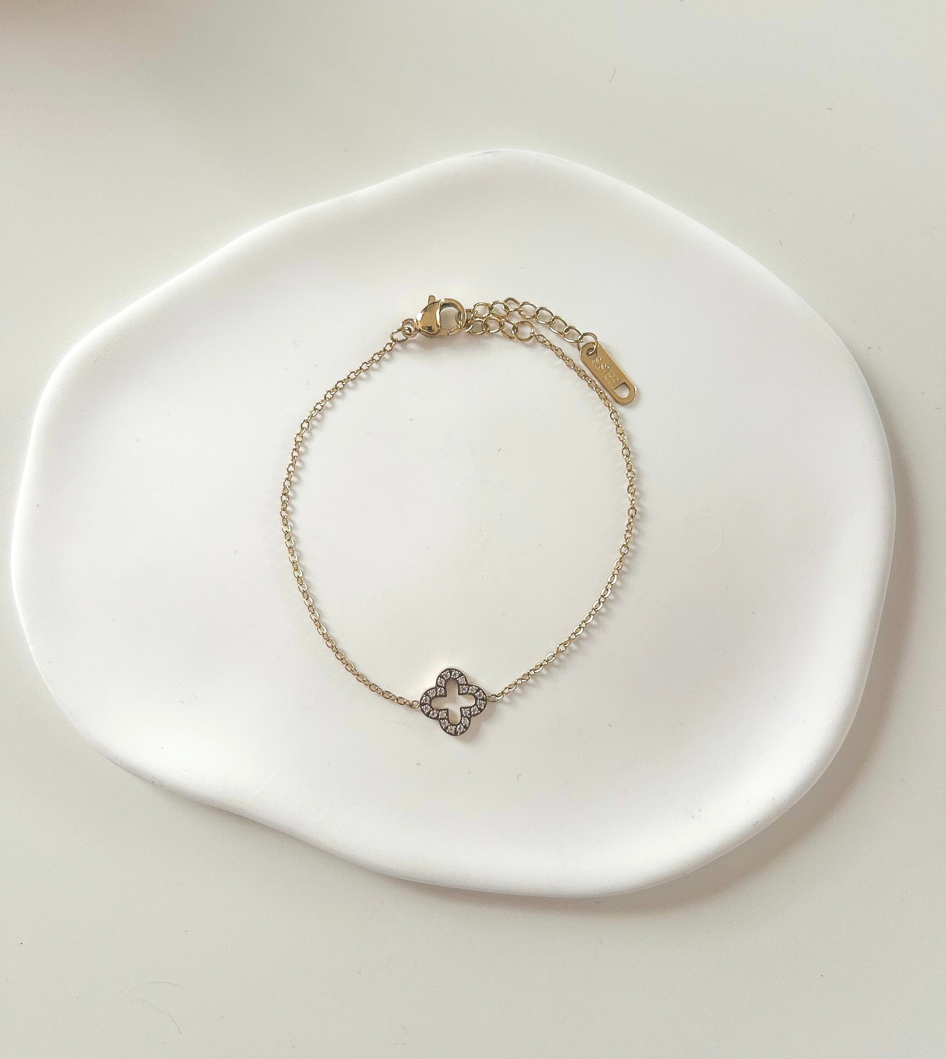 Bracelet doré avec petit trèfle pailleté